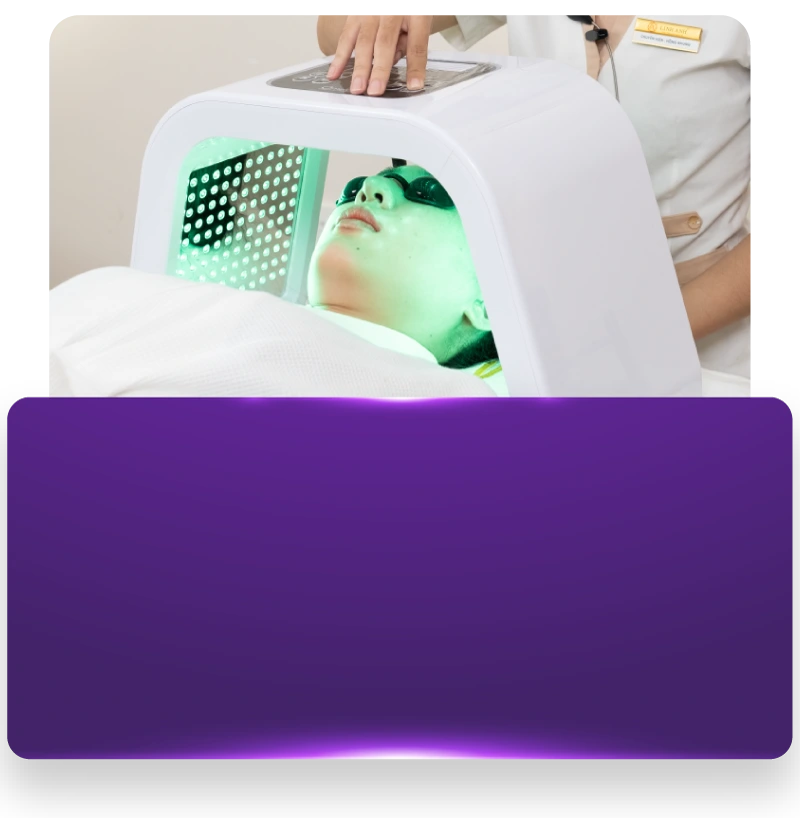Tích hợp công nghệ ánh sáng Blue Light tác động sâu vào tầng hạ bì, triệt tiêu khuẩn mụn, ức chế bã nhờn, ngăn ngừa mụn